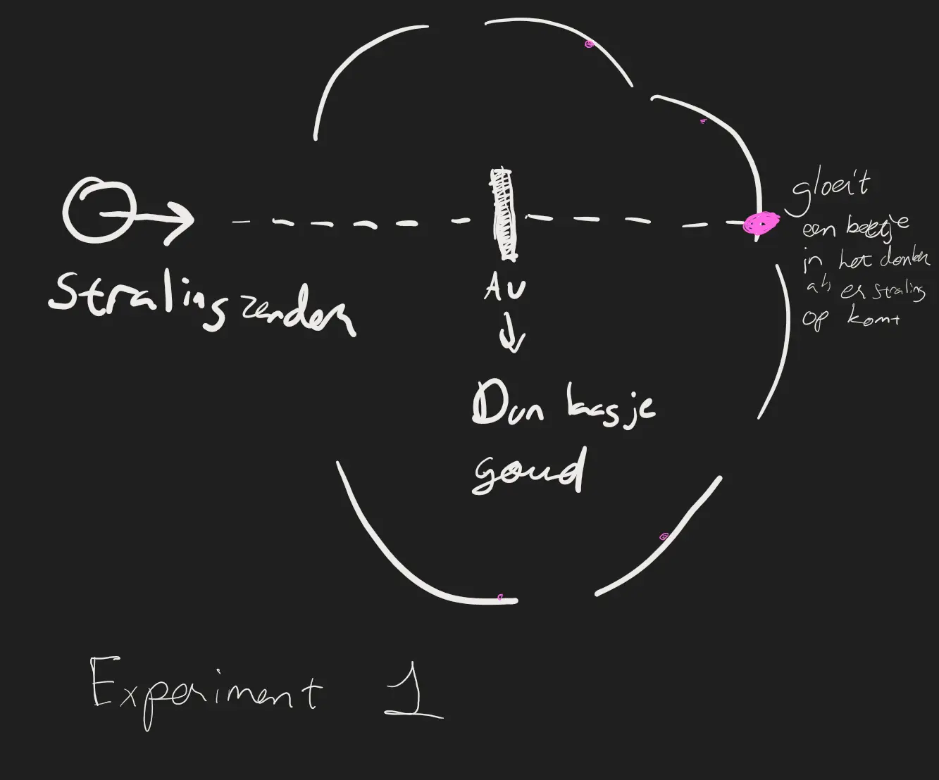 Rutherford bestuurde radioactive atomen, hij merkte dat de atomen onstabiel waren. Hij deed een experiment: Hij liet zijn assistenten positief geladen straling op atomen in een goude folie schieten en kijken waar het stralingdeeltjes heen gingen. Dit konden ze doen omdat de plaat waar het deeltje op viel een klein beetje opgloeit, ze deden het onderzoek dus in het donker. De gloed liet zien dat de meeste deeltjes gewoon door het atoom heen gingen, sommigen werden een klein beetje afgebogen. Toen de assistenten teruggingen naar Rutherford om hem het saaie nieuws te vertellen zei hij “Plaats de platen dan maar eens aan de andere kant.” De assistenten zagen dat sommige deeltjes terug richting de bron werden gereflecteerd. Ze omschreven het: “Alsof je met een kanon op een zakdoekje schiet en de kogel terug wordt gekaatst”. Na veel berekeningen concludeerde Rutherford dat de straling alleen teruggekaatst kon worden als atomen een kleine maar sterk positief geladen centrum hadden. Hij noemde dit de kern. Als het atoom 100 meter was, dan zou de kern volgens hem de grootte van een erwt hebben.
