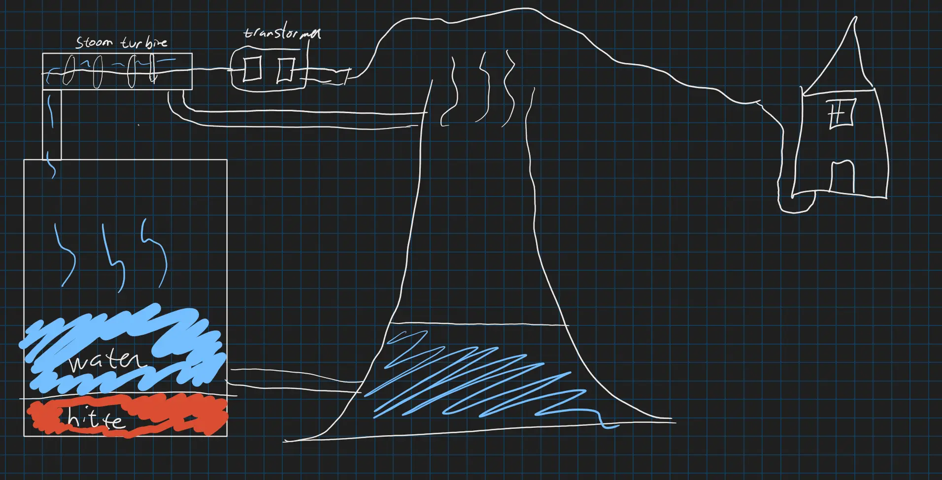 Als je dan het energie hebt wordt het door transformatoren naar de goeie spanning wordt omgezet. En dan naar gebouwen wordt gebracht.